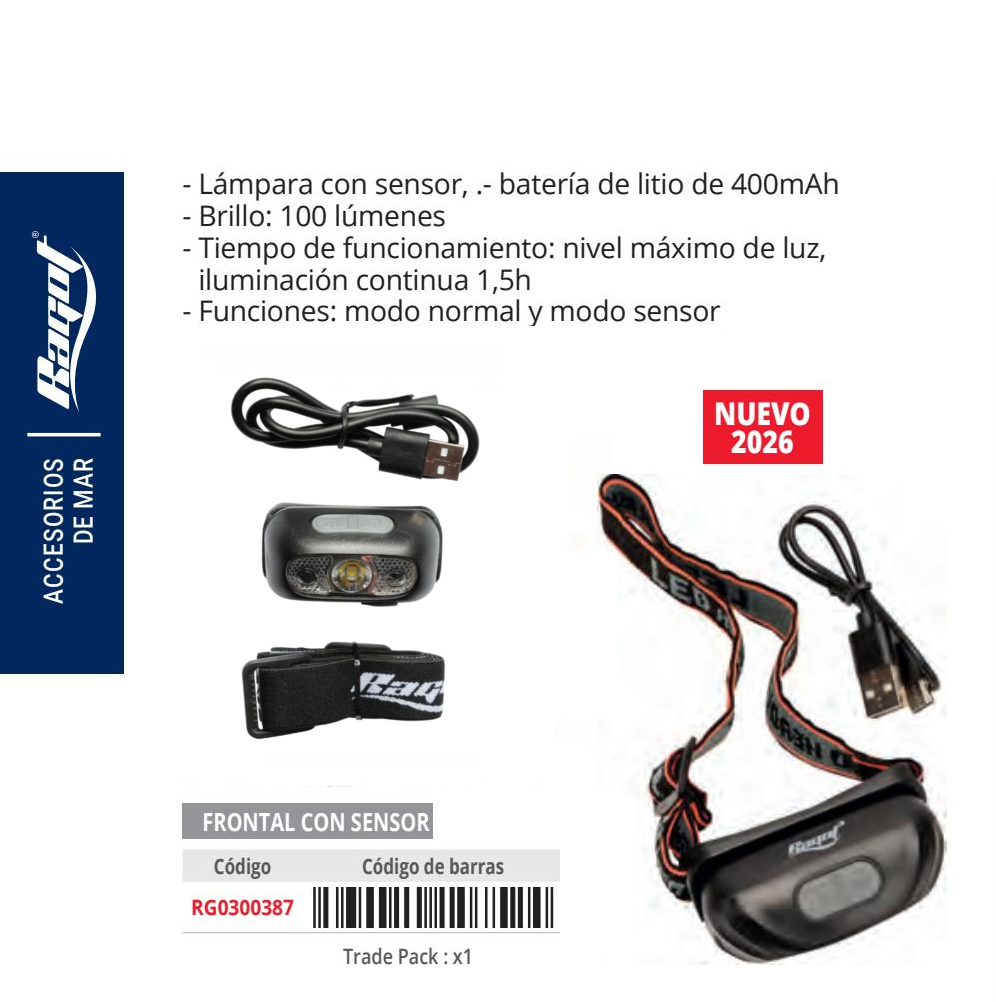 Lanterna de cabeça LED RAGOT Lanterna de cabeça recarregável por USB